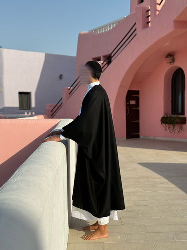 Une pièce d'exception qui allie élégance incomparable et finesse rare. Son design raffiné en daim de qualité supérieure rehaussera votre style avec une élégance sans pareille. Parfaite en solo ou en duo, cette cape à la coupe large incarne la pudeur et dégage une aura empreinte de respect. Ajoutez une touche de sophistication à votre garde-robe avec la Cape du Sultan.